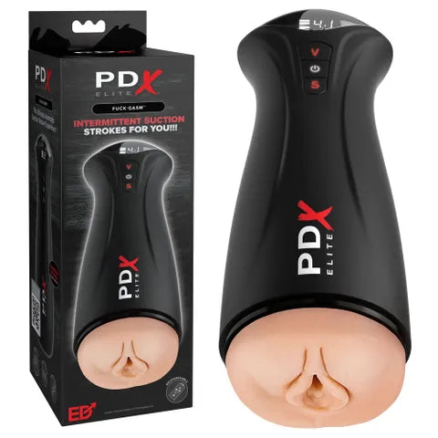 The PDX ELITE Fuck-Gasm elevates masturbation with powerful intermittent suction and vibration for the ultimate stroker experience. It's a perfect storm of sensation for heightened solo sex sessions that can be customised to your personal moods! Get ready for explosive hands-free pleasure as the Intermittent Suction Technology automatically sucks your penis in and out. Designed for ultimate pleasure, the textured walls of the ultra-soft sleeve is like nothing you've ever felt before! The Fuck-Gasm is ready when you are, and will deliver the most intense orgasms you've ever had!